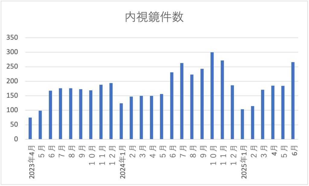 当院で、2025年6月上部・下部内視鏡検査を受けていただいた患者さんは、266名でした。