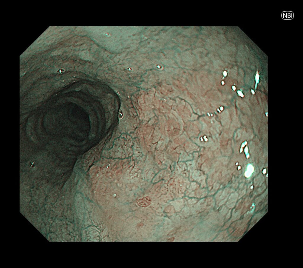 NBI観察では、食道扁平上皮を1層残し、その直下で何らかの組織の増殖像を伺わせる所見を認めます。