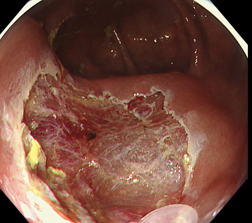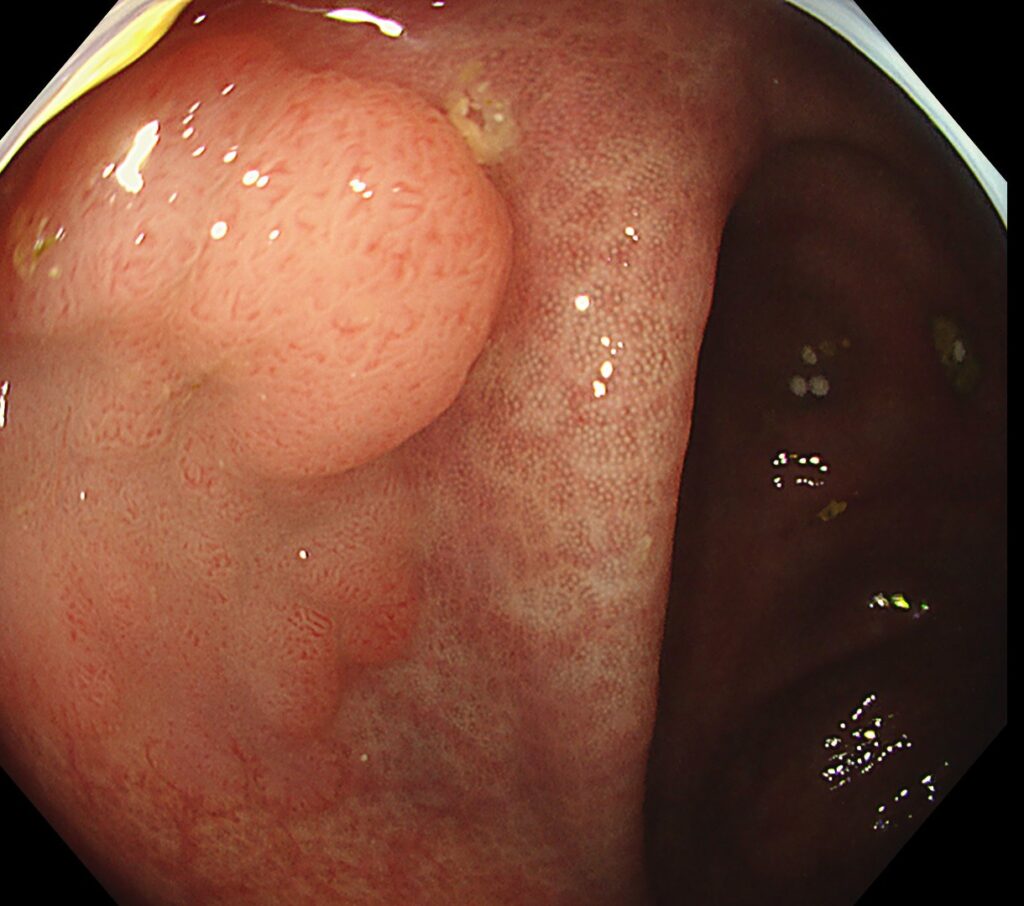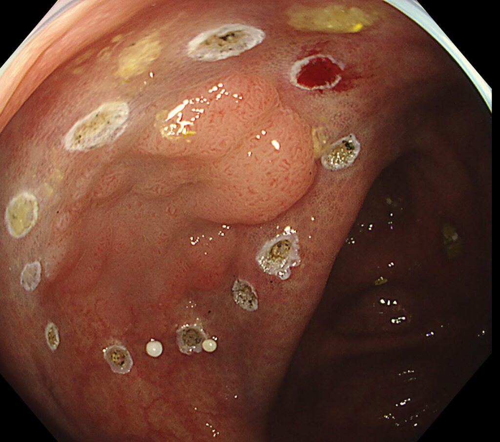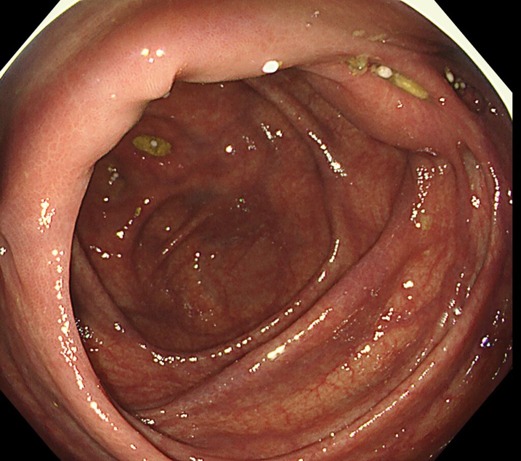大腸メラノーシスという、内視鏡治療のハードルがあがる点に加え、バウヒン弁真裏という解剖学的な難しい病変でも、当院では治療可能です。