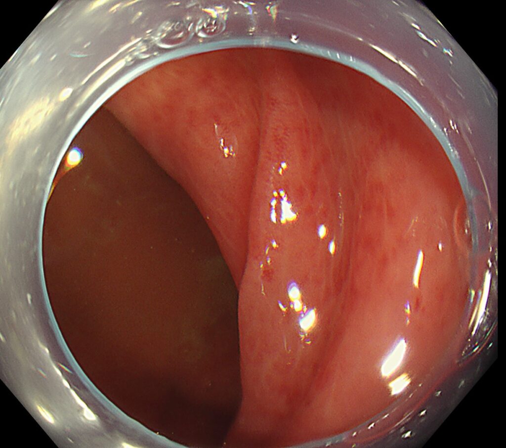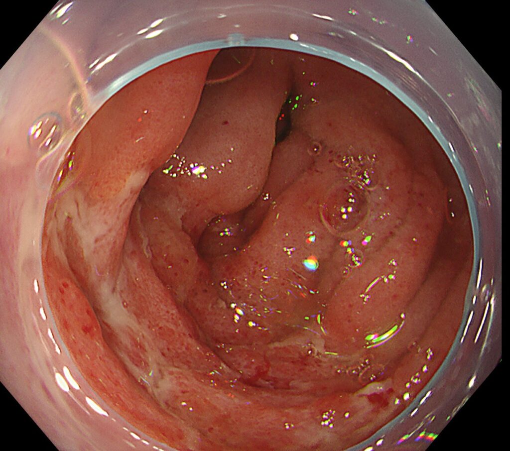 加えて、上行結腸はびまん性に斑状発赤を認めます。